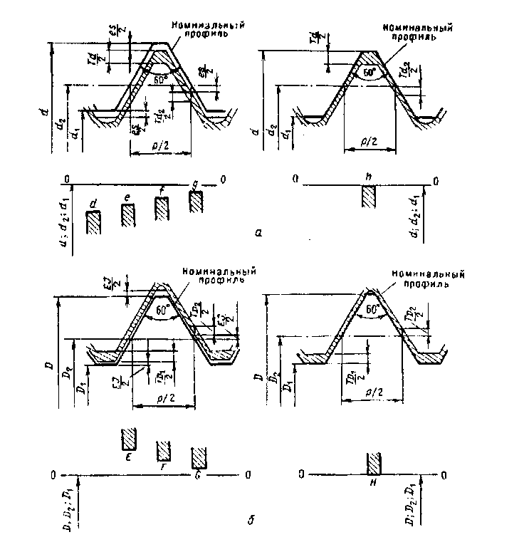 и внутреннюю (б) резьбы для образования посадки скольжения (с зазором)