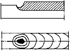 К наружным дефектам относятся нарушение формы, размеров и внешнего вида швов: неравномерная ширина шва по его длине, неравномерная высота шва, неравномерные катеты шва, подрезы, наплывы, прожоги, незаваренные кратеры, свищи.