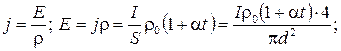 , где Е — напряжённость поля в нити, ρ — удельное сопротивление,