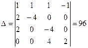 Для решения воспользуемся методом Крамера. Для этого в равенства (2) – (4) подставим значения сопротивлений и эдс и уравнения перепишем в следующем виде: