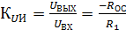Коэффициент усиления ОУ при инвертирующем включении Кин определяется отношением сопротивление резисторов в цепи обратной связи и равен: