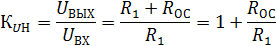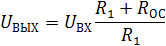 В неинвертирующем ОУ, схема которого приведена на рисунке 2 сигнал UВХ поступает на неинвертирующий вход, благодаря чему UBbIX синфазно UBX. Напряжение на выходе ОУ равно сумме напряжение на резисторах RОС и R1.