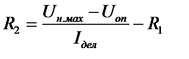 2.3.10 Определяем сопротивления резисторов делителя R1,R2,R3. Условимся считать, что если движок потенциометра R2 находится вверху, то Uвых минимально: Uн.мin, а Сли внизу, то Uн.мах: