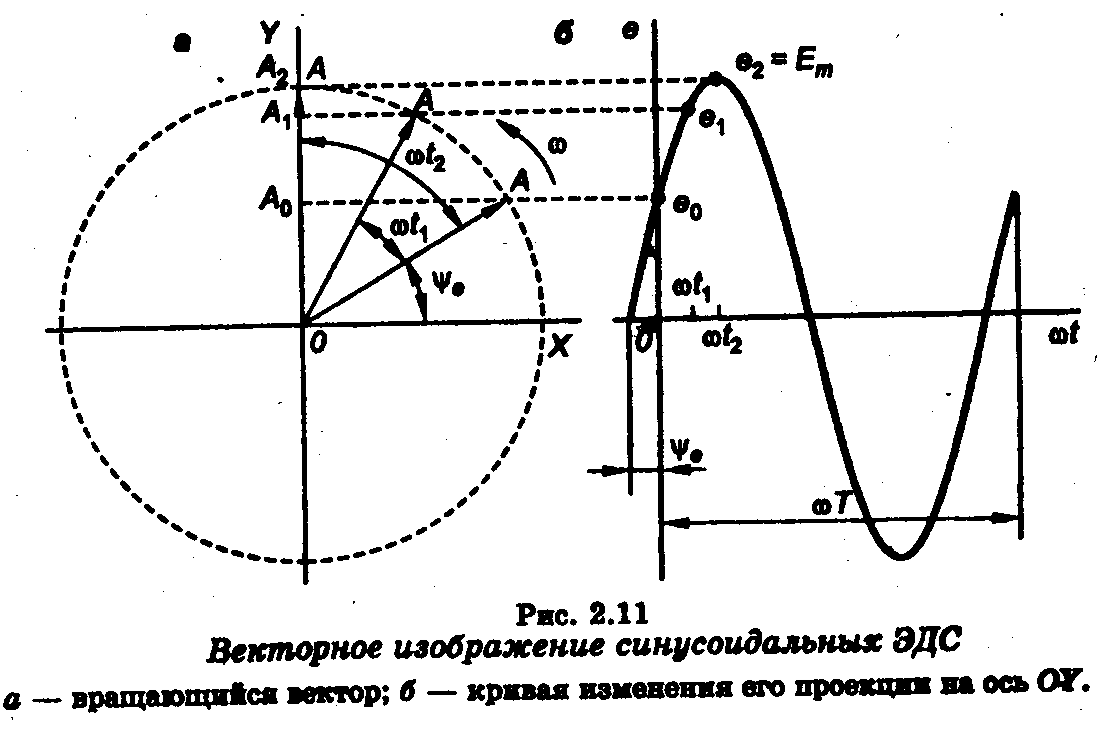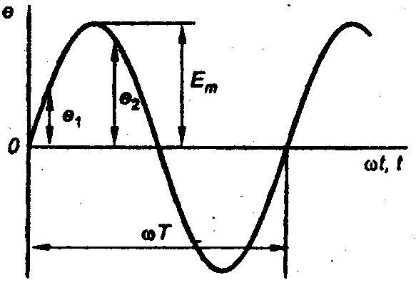 , где ωt + ψ — фаза-угол, определяющий значение синусоидальной величины в данный момент времени; ψ - начальная фаза, т. е. угол, определяющий значение величины в начальный момент времени.