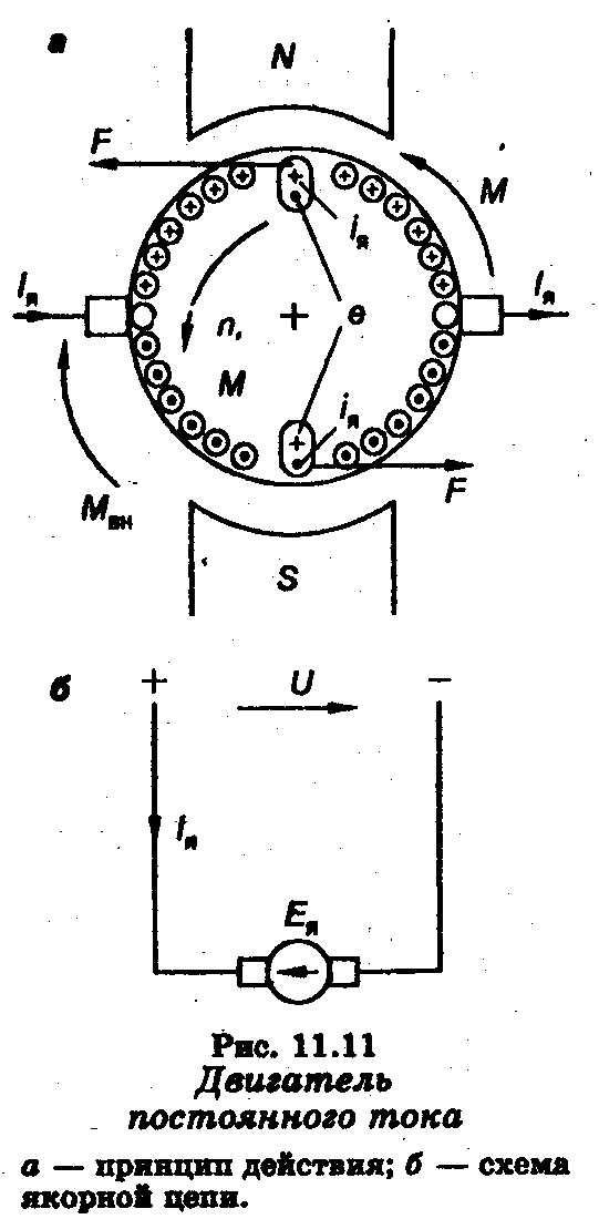 Принцип действия двигателя состоит в следующем: если к проводнику, находящемуся в магнитном поле, подвести напряжение, т. е. пропустить через него ток, то проводник под действием возникшей силы fm начнёт перемещаться. При перемещении вследствие пересечения проводником магнитного поля в нём возникает ЭДС, проявляющаяся как реакция на подведённое напряжение. Поэтому ЭДС в двигателе всегда направлена навстречу току.