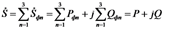 Мощность трехфазного приемника или генератора равна сумме фазных мощностей: