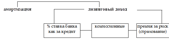 За пользование имуществом лизингополучатель перечисляет лизингодателю платежи в соответствие с договором. Разница между суммой лизинговых платежей и стоимостью имущества составляет доход лизингополучателя. Структура лизингового платежа представлена на рис. 11.