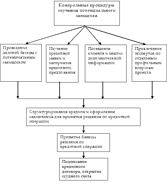 | Оформление кредитного договора, договоров обеспечения и составление графиков платежей | Управляющий отделением, начальник отдела кредитования, сотрудник юр. службы | Кредитный договор, договора обеспечения, график платежей | При кредитовании расчетного счета (овердрафтный кредит) сначала оформляется договор (Генеральное соглашение) об овердрафтном кредитовании, а в последствии в случае образования дебетового сальдо на расчетном счете оформляется кредитный договор | |||