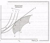 Допустимым множеством портфелей называется множество всех существующих и потенциально возможных для построения на рынке портфелей, с точки зрения их двух основных параметров: уровня риска и доходности. Кроме того, допустимое множество портфелей – это множество точек на плоскости «Риск-доходность», соответствующих всем существующим и потенциально возможным портфелям активов. Эффективным портфелем называется портфель из допустимого множества портфелей, удовлетворяющий одновременно двум условиям: