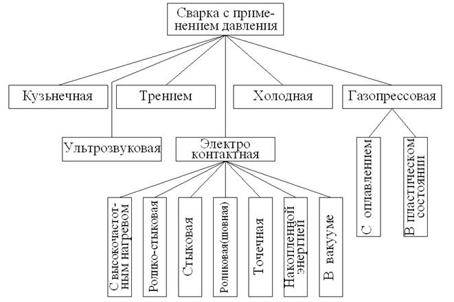 В первой сварка осуществляется без предварительного подогрева свариваемых деталей. Здесь происходит соединение в результате пластической деформации в районе контакта, и кратковременный, относительно небольшой по величине нагрев лишь сопутствует этой деформации. При этом происходит разрушение поверхностных окисных пленок, растет площадь чистых контактируемых поверхностей, они сближаются до величин межатомных расстояний, образуются межатомные связи и создается неразъемное соединение. Способ применим для относительно «мягких» (высокопластичных) металлов, таких как медь, алюминий и их сплавы, и служит для соединения проводов, шин и армирования деталей из одного металла другим.