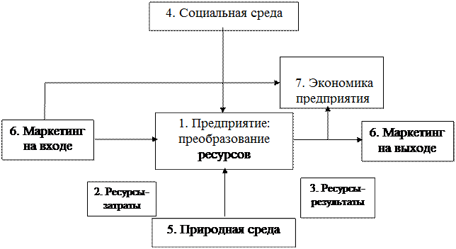 блок 7- соотношение ресурсов на входе с ресурсами на выходе образует экономическую работу на предприятии, экономику предприятия.