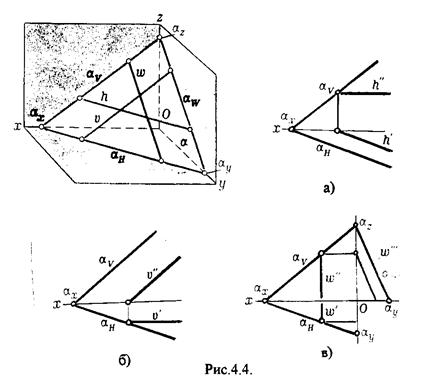 Следы плоскости также являются ее линиями уровня. Поскольку они лежат в плоскостях проекций, их еще называют нулевыми. Например, горизонтальный след - нулевая горизонталь и т.д.