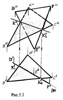 Способ построения линии пересечения двух плоскостей состоит в следующем (рис,5.4)