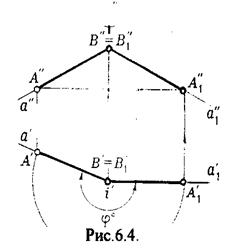 Чтобы плоскость общего положения заняла проецирующее положение, достаточно горизонталь или фронталь перевести в проецирующее положение. При повороте линии уровня на угол j на такой же угол повернется и все множество точек этой плоскости.