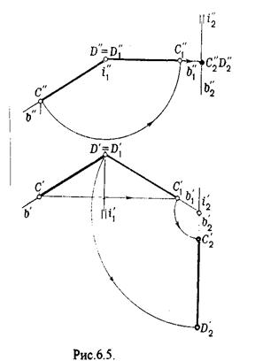 Вращение производили вокруг оси i ^ H. Ось i для упрощения геометрических построений проведена через точку В, следовательно она не будет менять своего положения в процессе преобразования. Для нахождения точки А// необходимо из А/ провести перпендикуляр к оси х и отметить точку его пересечения с горизонтальной прямой, проведенной через a//.