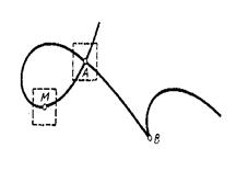 Другие точки называют особыми (точки А, В). К ним относятся точки возврата (рис.7.5,а,б.), точки самопересечения (рис.7.5,в.), точки перегиба (рис.7,5,г.), точки излома (рис.7.5,д,е.).Особым точкам плоской кривой соответствуют такие же точки на ее проекции. Кривая, состоящая только из обыкновенных точек, называется плавной кривой.