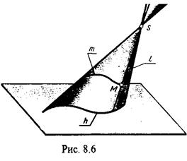 Коническая поверхность образуется перемещением прямой 1 (образующей) по кривой направляющей m и, проходящей через фиксированную точку S (вершину). a (1,m,S); (liÇm, SÎli),(Рис.8.6.) Точка М, принадлежащая поверхности конуса, принадлежит образующей 1.
