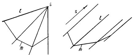 Цилиндрическая поверхность b (рис.8.9.) образуется перемеще-нием прямой образую-щей 1 по кривой направляющей m. При этом образующие параллель-ны заданному направле-нию s Цилиндрическую поверхность можно рассматривать как частный случай кони-ческой поверхности с бесконечно удаленной вершиной s.