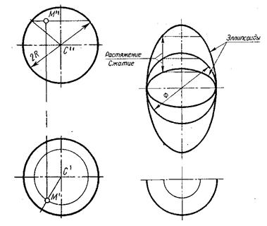 1. Сфера. Образуется вращением окружности вокруг оси, проходящей через центр сферы. При сжатии или растяжении сферы она преобразуется в эллипсоиды, которые могут быть образованы и при вращении эллипса вокруг одной из его осей. Если осью вращения является большая ось эллипса, эллипсоид называется вытянутым, а если меньшая то сжатым (Рис.8.14.)