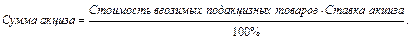 | Сумма акциза | = | Объем ввозимых подакцизных товаров в натуральном выражении | × | Твердая ставка | × | Курс евро на дату принятия на учет ввезенных подакцизных товаров в евро (если в белорусских рублях – на твердую ставку в белорусских рублях) | . |