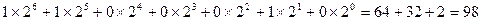 Пример:Перевести число 9810 из Р-ой (десятичной) системы в Q-ю двоичную систему счисления Q=2.
