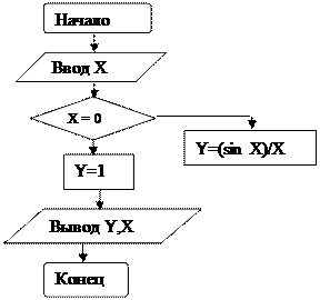 значение функции у=(sin (Х)/Х. Если условие Х=0 не выполняется, т.е.