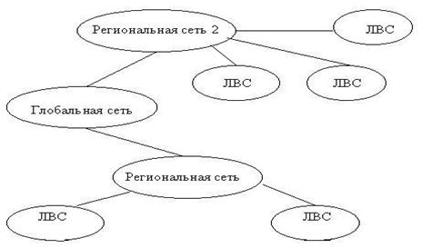 Локальные вычислительные сети могут входить как компоненты в состав региональной сети, региональные сети - объединяться в составе глобальной сети и, наконец, глобальные сети могут также образовывать сложные структуры.