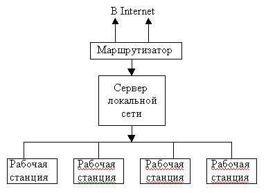 Для подключения локальных сетей к Internet используются средства, рассмотренные в подразд. 6.5. Схема подключения локальной сети к Internet приведена на рис.1. Важной особенностью Internet является то, что она, объединяя различные сети, не создает при этом никакой иерархии - все компьютеры, подключенные к сети, равноправны. Для иллюстрации возможной структуры некоторого участка сети Internet приведена схема соединения различных сетей (рис. 2).