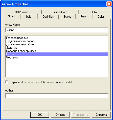 - Replacealloccurrencesofthisarrownameinmodel – переключатель, обеспечивающий глобальное изменение имени стрелки на новое для всех вхождений данной стрелки в модели