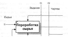 Управление (Control) - правила, стратегии, процедуры или стандарты, которыми руководствуется работа. "Каждая работа должна иметь хотя бы одну стрелку управления. Стрелка управления рисуется как входящая в верхнюю грань работы. На рис. 3 стрелки "Задание" и "Чертеж" - управление для работы " Изготовление изделия". Управление влияет на работу, но не преобразуется работой. Если цель работы изменить процедуру или стратегию, то такая процедура или стратегия будет для работы входом. В случае возникновения неопределенности в статусе стрелки (управление или контроль) рекомендуется рисовать стрелку управления.