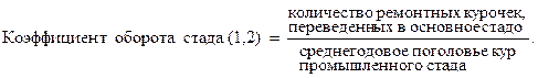 Для анализа эффективности производства определяют следующие показатели: коэффициент оборота стада, производства яиц на 1 птицеместо и использование птицемест.