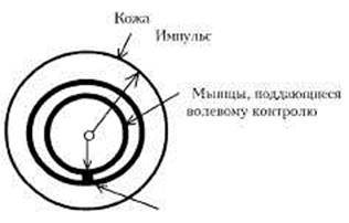Рис. 5.2. Влияние импульса на мышечную систему. Импульс активизирует мышцы, но может быть заблокирован хроническим напряжением, которое не позволит ему достичь поверхности.