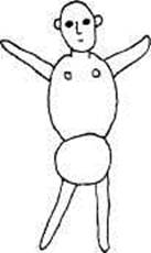 Есть и другой способ оценки уровня чувствительности в теле — нужно попросить пациента нарисовать женщину и мужчину на двух отдельных листах бумаги. Степени сложности их позиций и сходства с живыми людьми указывают на степень осознавания своего тела пациентами и на те области, которые они чувствуют лучше. Например, некоторые пациенты рисуют человека без ладоней и стоп или без глаз, без какого-либо выражения лица. Это выразительно свидетельствует о недостатке чувствительности в этих местах. Некоторые рисуют схематично, прямыми линиями из черточек, что указывает сильный недостаток чувствительности в теле: они не в состоянии ассоциировать с телом такие чувства, как печаль, радость или страх (рис. 5.3).