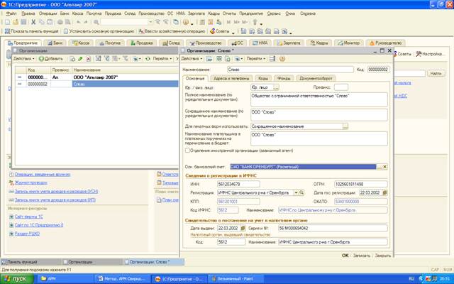 Справочник «Организации» в пункте главного меню «Предприятие»