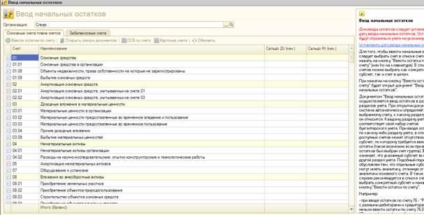 Если ведение учета в программе начато не с начала хозяйственной деятельности, либо осуществлялся переход с одной версии программы на другую, необходимо внести начальный баланс организации по состоянию на 01.01.20хх г.