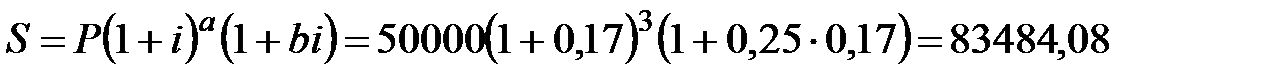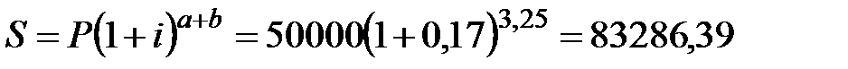 года, где a = 3, b =0,25. Остальные параметры ссуды составят: P = 50000 руб., i = 0,17. Наращенная сумма будет равна: