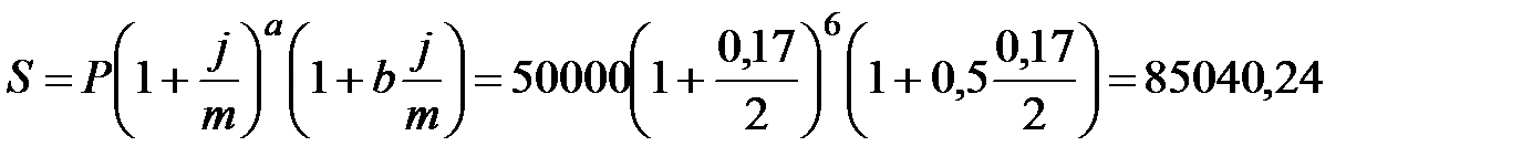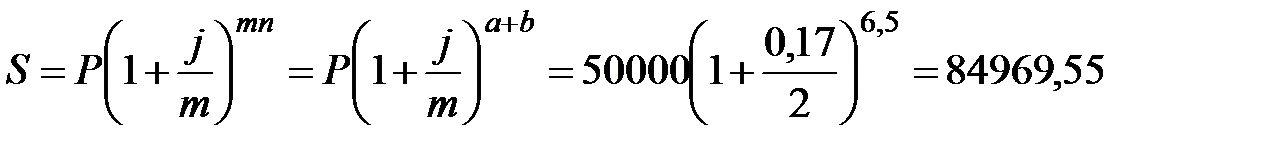 полугодий, где a =6 (a – целое количество периодов начисления процентов), b =0,5 (b – дробная часть одного периода). Наращенная сумма составит: