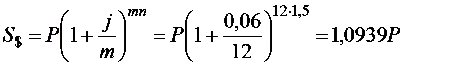 Решение. Обозначим имеющееся количество долларов через P. Остальные параметры финансовой операции составят: n =1,5; m$ =12; mруб. =2; j$ =0,06; jруб. =0,1. Помещая доллары на валютный депозит, через 1,5 года можно получить: