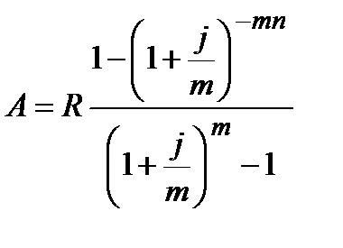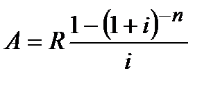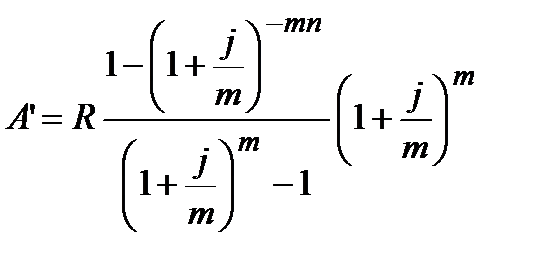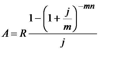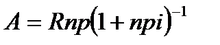 A – современная величина ренты (приведенная стоимость), т.е. сумма всех платежей, уменьшенная (дисконтированная) на величину процентной ставки на определенный момент времени (как правило, на начало ренты).