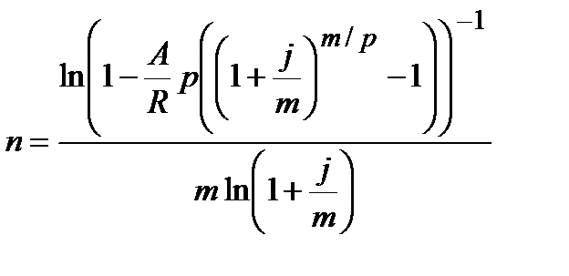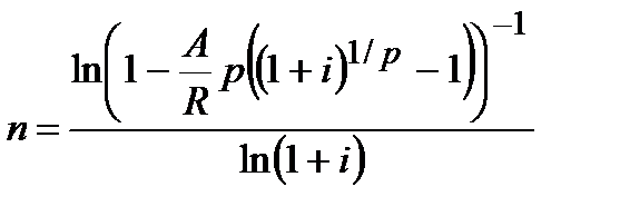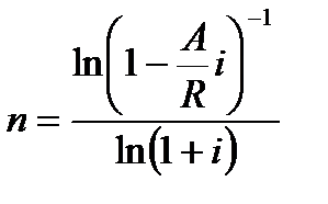 б) при известных величинах современной стоимости ренты A, годового платежа R и коэффициента приведения ренты