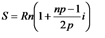 S – наращенная сумма ренты, т.е. сумма всех платежей с начисленными на них процентами на конец срока ренты;
