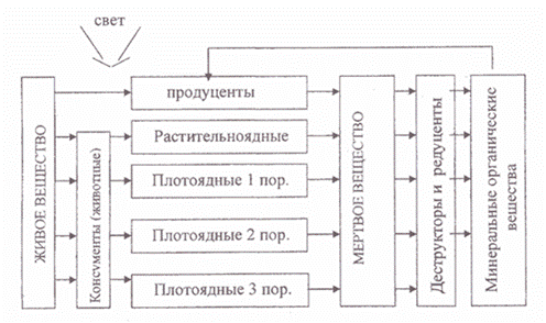 Рисунок 2.2 – Трофическая структура экосистемы и круговорот
