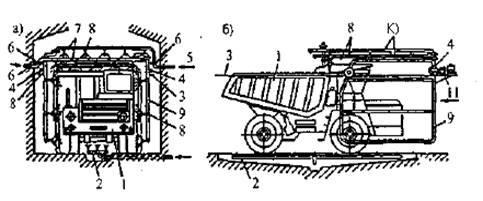 Примером отечественной мобильной моечной установки является установка для мойки автомобилей-самосвалов, в том числе самосвалов большей грузоподъемности семейства БелАЗ (рис. 3).
