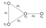 В графе, изображенном на рис. 3.1, концами ребра a 1являются вершины x 1, x 2; вершина x 2инцидентна ребрам a 1, a 2; степень вершины x 3равна3; вершины x 1и x 3смежные; ребра a 1и a 2смежные; вершина x 4висячая. В ориентированном графе, изображенном на рис. 3.2, началом дуги a 1является вершина x 1, а ее концом - вершина x 2; вершина x 1инцидентна дугам a 1и a 2; G (x 1) = { x 2, x 3}, G (x 2) = Æ, G- 1(x 3) = { x 1}, G- 1(x 1) = Æ.