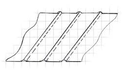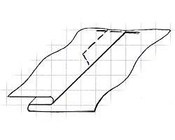| Односторонняя | В простой отделочной односторонней складке сгибы ткани направлены в одну сторону на лицевой стороне и в другую сторону на изнаночной стороне детали. Припуск ткани при раскрое равен удвоенной глубине складки. (Если в готовом виде складка 3 см, то припуск равен 6 см). | | ||||