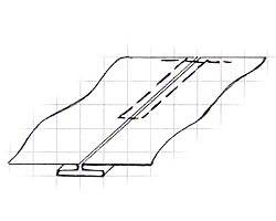 | Вытачные швы | Применяются для изготовления рельефов, неотрезных кокеток. Намечаем мелом с изнаночной стороны линию шва; По намеченной линии перегибаем деталь лицевой стороной внутрь, подкладываем полоску ткани (выкроенную по косой или поперечной) и за-страчиваем на расстоянии 1,5-2 мм от линии перегиба; | С заутюживанием С заутюживанием | ||||