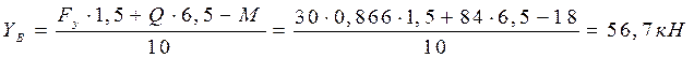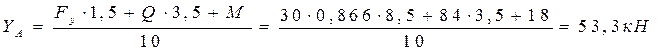 Ответ: XА=-15кН, YA=53,3 кН, YB=56,7кН.