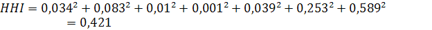 Чем больше значение этого показателя, тем выше концентрация фирм на рынке.