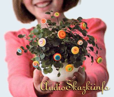 Загни плоскогубцами конец проволоки (примерно 5 см). Продень концы проволоки через отверстия подготовленных пуговиц, начиная с самой маленькой. Короткий конец проволоки закрути. Один цветок готов. Сделай несколько разноцветных цветочков и укрась растение в горшке.