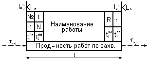 Условное обозначение работы на сетевом графике ОДВ приведено на рис. 6. Здесь приняты следующие обозначения параметров в ячейках прямоугольника: